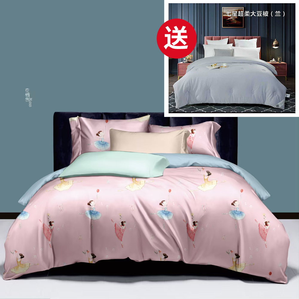 购高档长绒棉床笠四件套送七星超柔大豆被